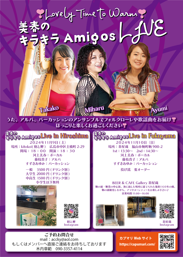 2024.11.9 広島・kitokoi、11.10 福岡・茶屋蔵